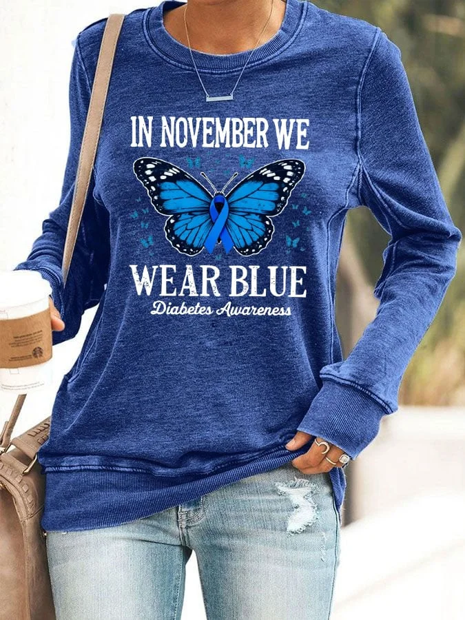 Women's Diabetes Awareness IN NOVEMBER WE WEAR BLUE Print Sweatshirt