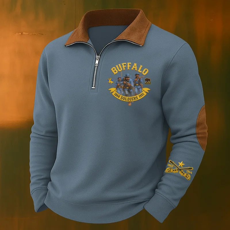 Men's Western Retro Buffalo Cavalry Print Casual Sweatshirt