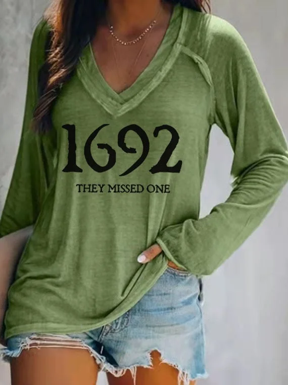 Women's 1692 They Missed One Salem Witch Casual V-Neck Long-Sleeve T-Shirt socialshop