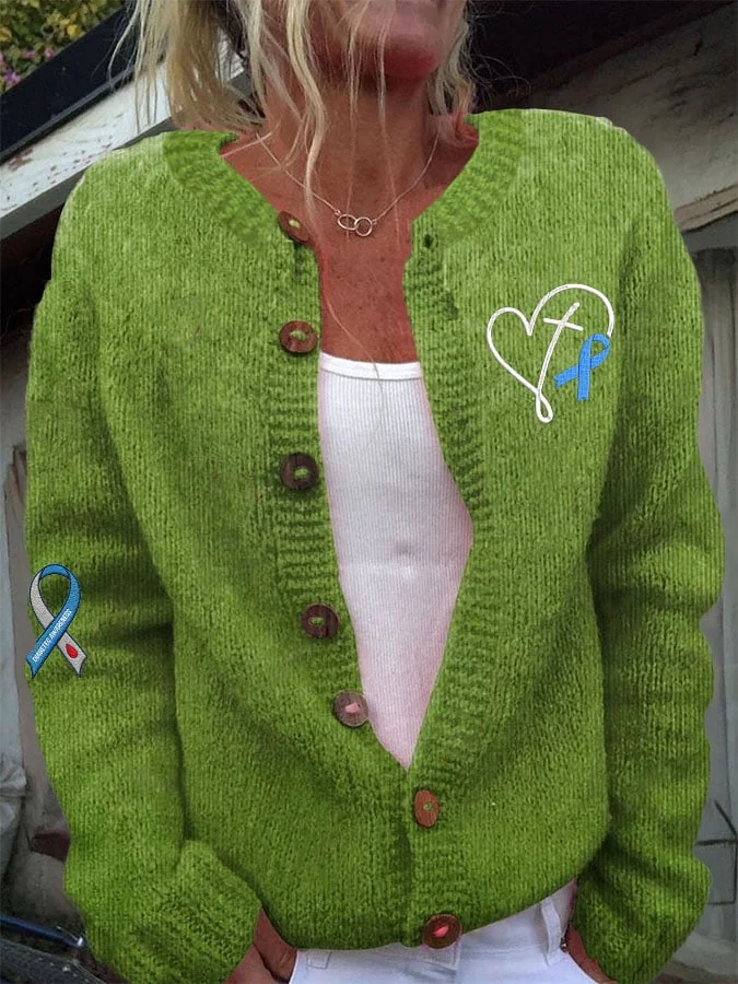 Women's Diabetes Awareness Printed Casual Cardigan socialshop