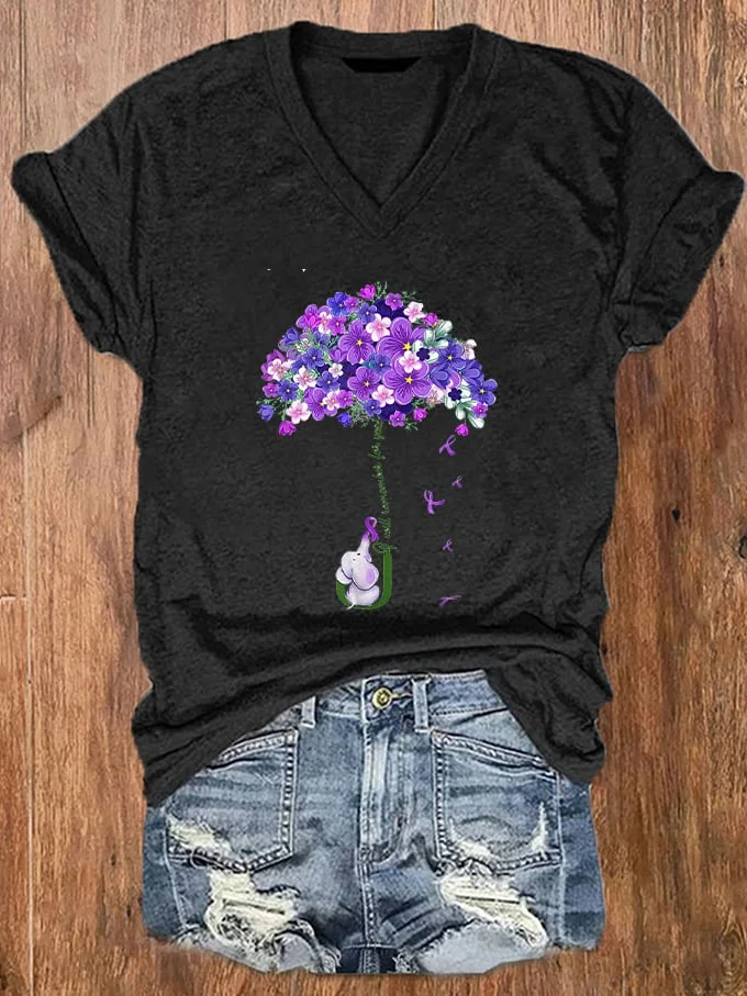 Women's I Will Remember For You Dementia Alzheimer's Disease Awareness Printed V-Neck T-Shirt socialshop