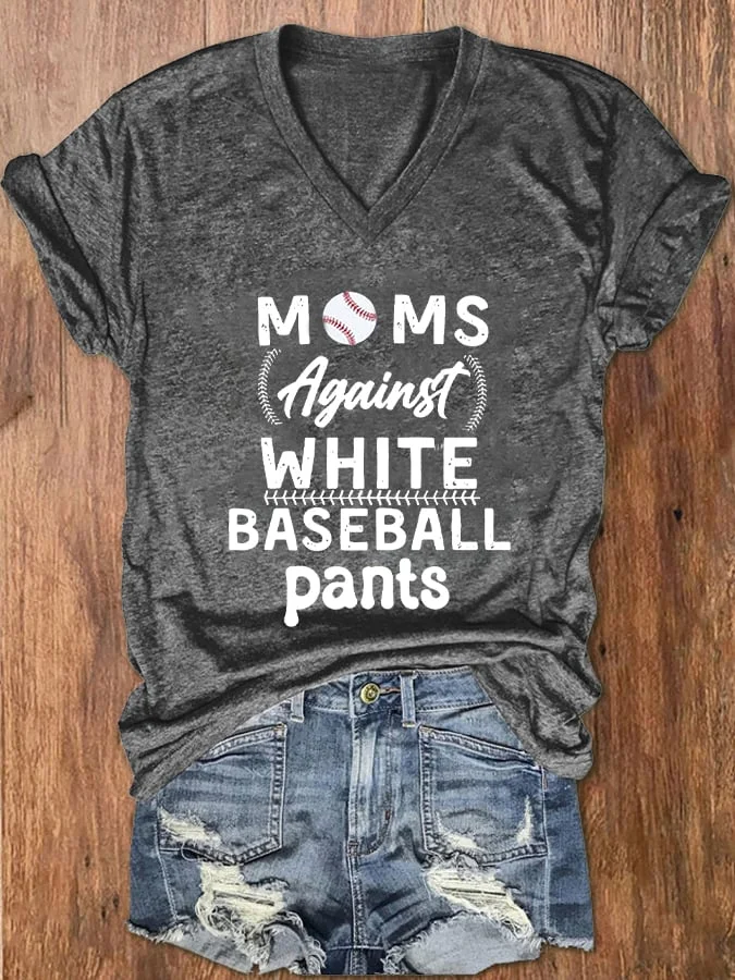 Women's Moms Against White Baseball Pants Print V-Neck T-Shirt