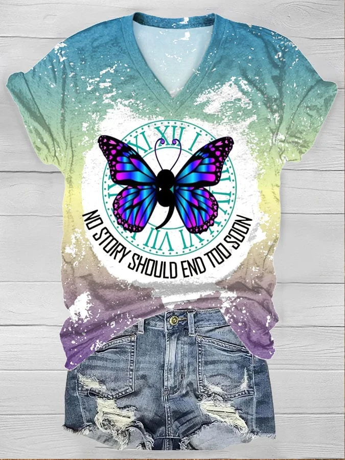 Women's No Story Should End Too Soon Butterfly Print Short Sleeve T-Shirt socialshop